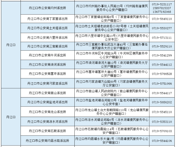 十堰丹江口市各派出所户籍窗口咨询电话和窗口地址大全表: