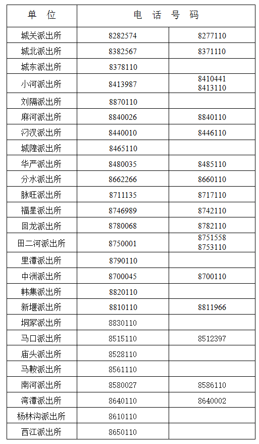 湖北汉川市辖区各派出所联系电话一览表:切实维护社会治安秩序持续稳定,严厉打击突出违法犯罪,彻底整治治安乱点乱象,加强基层基础工作,保障广大群众的生命财产安全。平安汉川,离不开您的支持和参与,让我们一起携手,共同维护汉川社会治安大局的持续稳定!电话号码的区号为0712。