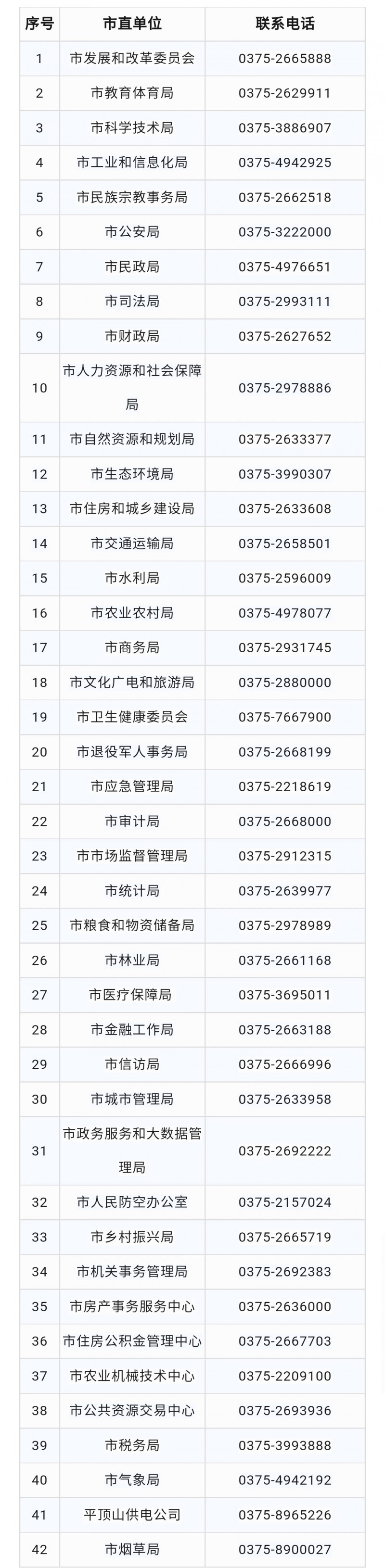 平顶山市市级直属单位联系电话大全表:河南平顶山市政府下面直属单位的对外公开联系电话是多少啦,在这里,对各单位的公开电话锦州整理并公开电话大全表,以方便群众咨询或者办理各项业务。