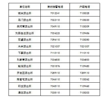 卢龙县辖区派出所值班报警电话及户籍电话大全表:为进一步方便广大人民群众,卢龙县对全县辖区派出所值班报警及户籍电话进行了系统全面梳理,现将各派出所电话公布给大家,如有治安、刑事类报警、违法犯罪线索举报、工作类咨询或户籍类问题可直接拨打派出所报警及户籍电话。固定电话的区号为0335。