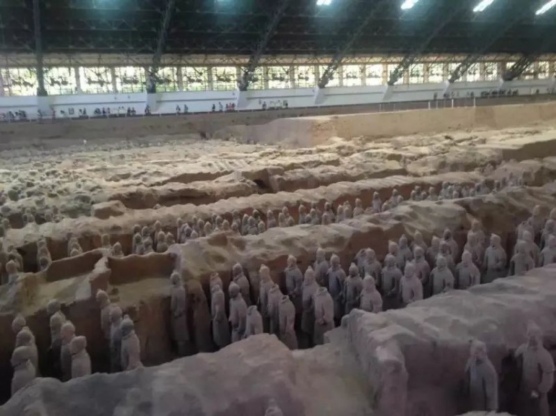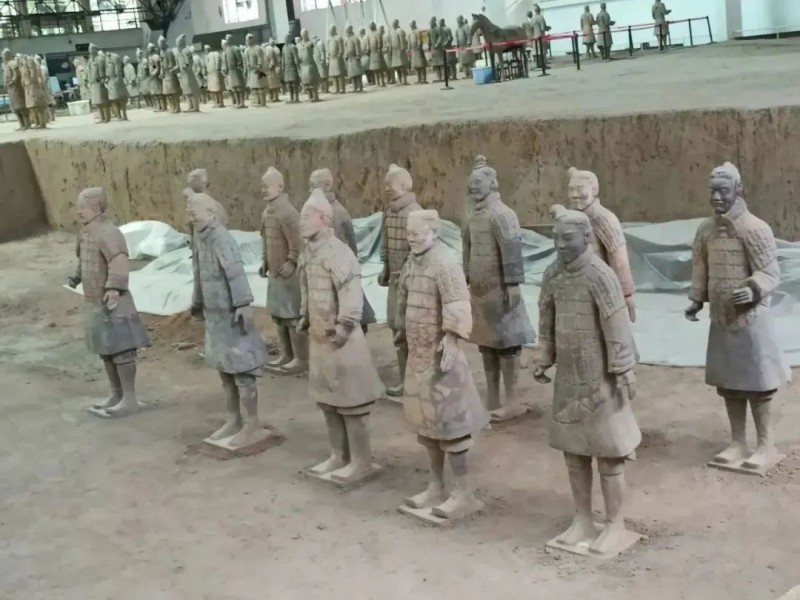 秦始皇陵墓兵马俑并未在史籍上有所记载,故未被人知,也因此历经二千余年而能保存原貌。1974年3月29日陕西大旱,临潼县村民杨志发在挖井打水时意外发现兵马俑碎片,当时村民称这些陶塑为“瓦爷”。在人们初次见到兵俑时,兵俑衣着、武器的颜色还十分鲜艳,非常好看,历经两千年威武不减;但是在考古学家挖出土时,受空气氧化影响,数分钟内即渐渐剥落消失,只剩下一般大众印象中的陶土色。1976年-1978年,考古队增添了考古、保护、照相、修复等人员,各项发掘工作全面开展。1979年10月1日,秦始皇兵马俑博物馆开始向国内外参观者展出。