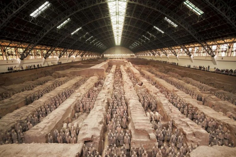 秦始皇即位后便开始兴建自己的陵墓,修建过程经其一生。秦始皇陵墓总面积达到50平方公里,包括现在的秦兵马俑和秦始皇陵。秦始皇陵墓是世界上绝无仅有的帝陵。首先,各种原料来源要求严格,很多都是采自特定产地,由专门工匠开采、加工。在建造过程中动用了大量人力、物力,有历史学家认为最多时有70万人参加建设工程。