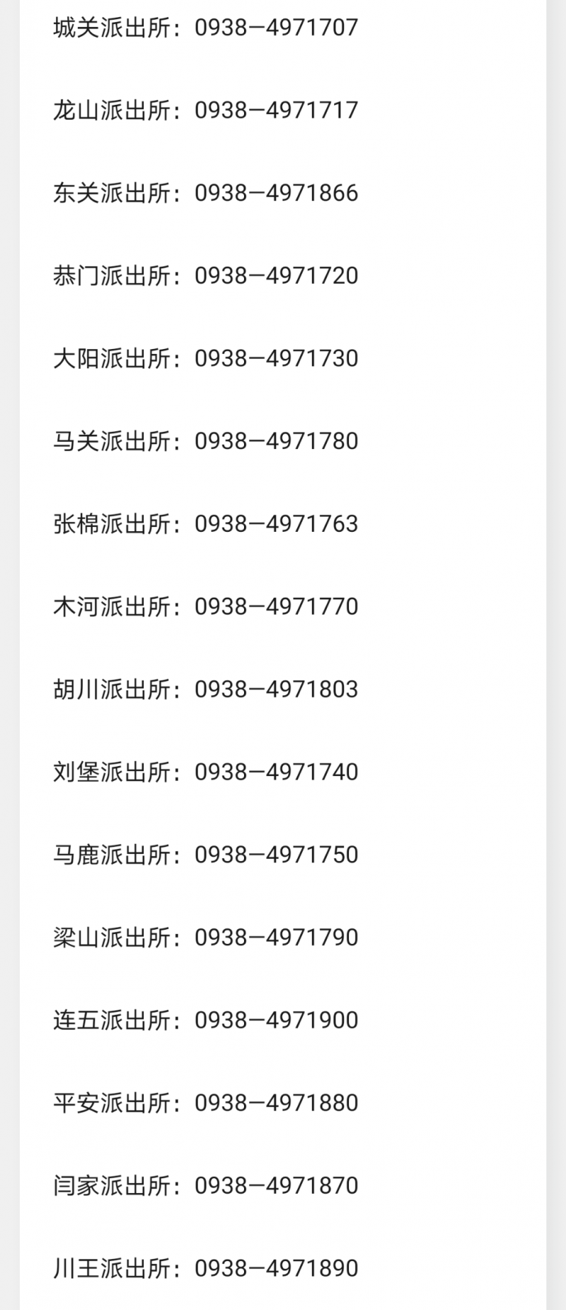 提示:关于甘肃张家川县辖区派出所户政(户籍)窗口咨询联系电话汇总表之信息作出免责提示,主要是为广大群众提供有用的能用的便民信息,其中部分便民信息及图文来源于张家川县政府主管机构网络公开内容,若给你带来不便,深表歉意,若有侵权,请及时联系我们删除!若有出现差错,请联系我们修改!