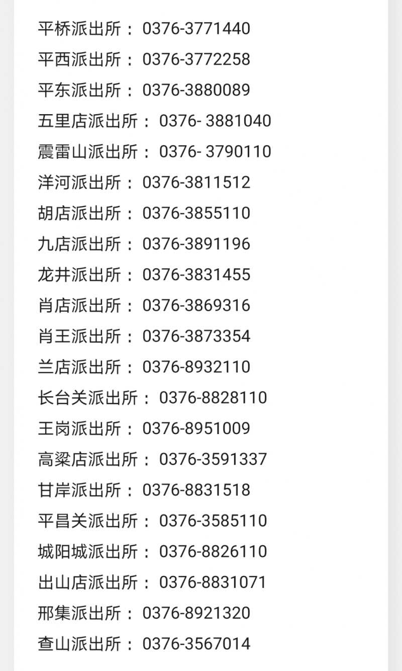 说明:关于信阳市平桥区辖区各派出所名称及值班电话号码汇总表之信息作出免责说明,主要是为广大群众提供有用的能用的便民信息,其中部分便民信息及图文来源于信阳市平桥区政府主管机构网络公开内容,若给你带来不便,深表歉意,若有侵权,请及时联系我们删除!若有出现差错,请联系我们修改!