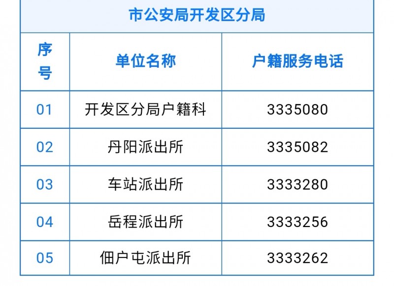 菏泽市开发区各派出所户籍服务电话汇总表: