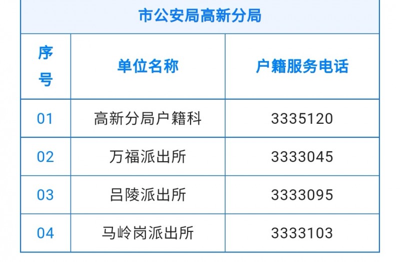 菏泽市高新区分局派出所户籍服务电话汇总表: