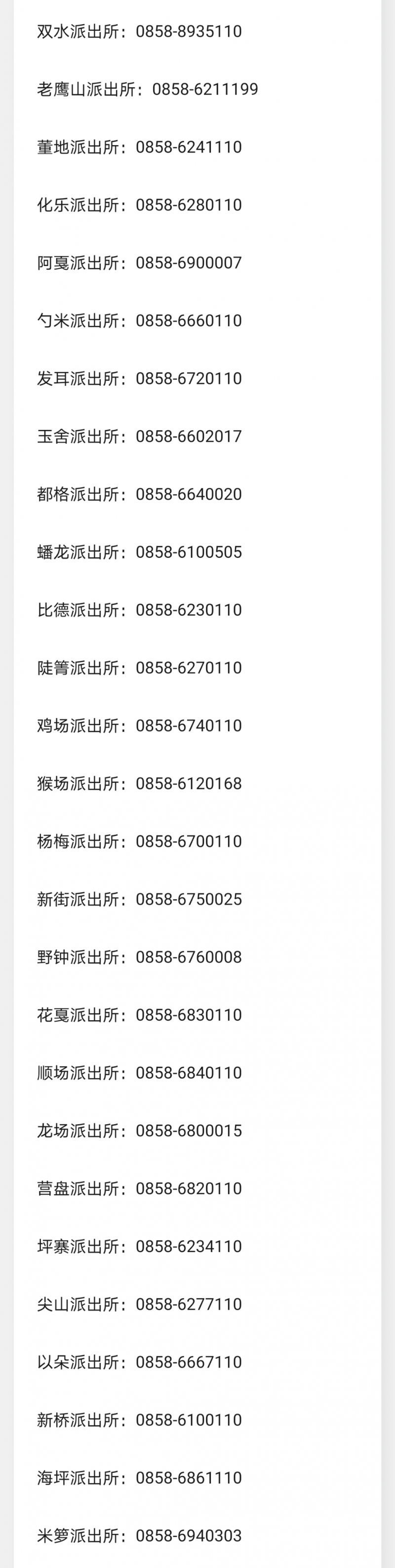 六盘水市水城区各派出所值班电话号码一览表:每一个派出所都是辖区居民的“守护神”,当小伙伴们遇到困难,第一时间就会想到去派出所。在六盘水市水城区的各辖区派出所值班电话号码是多少啦?请收藏六盘水市水城区各派出所值班电话一览表。