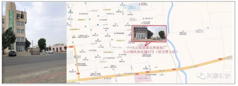 天山街道派出所办公地址:天山镇欧沐沦路53号(原交通管理大队位置)
