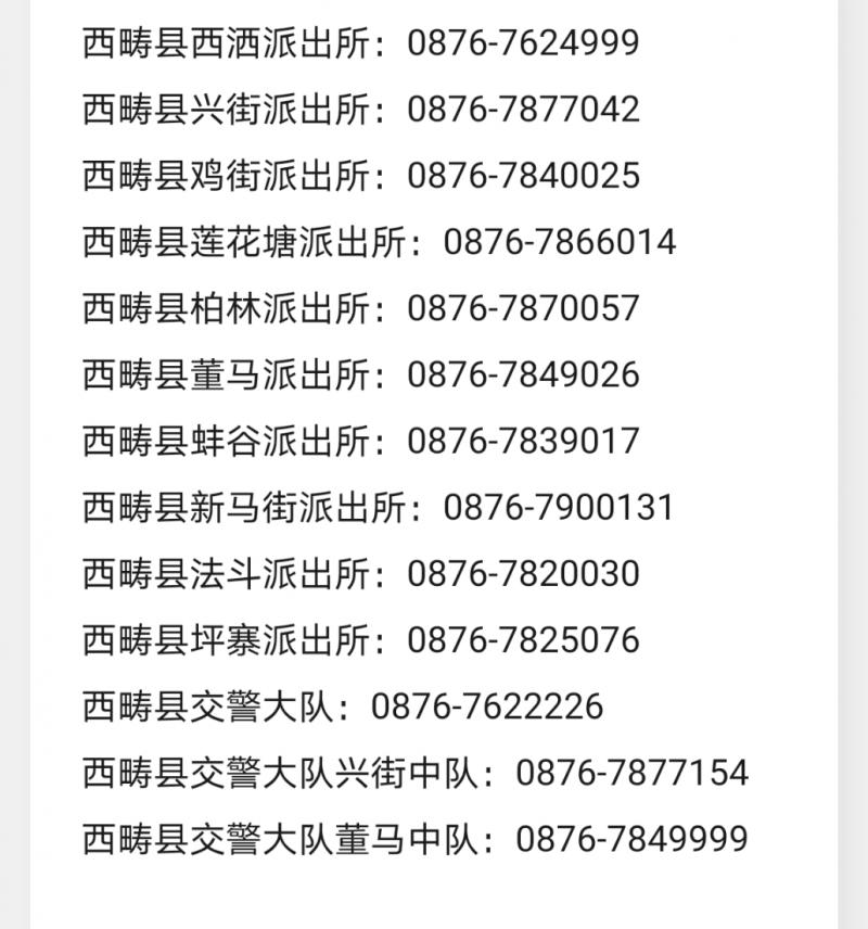 说明:西畴县各派出所和交警队报警电话大全表之信息来源于西畴县政府主管机构网络公开内容。