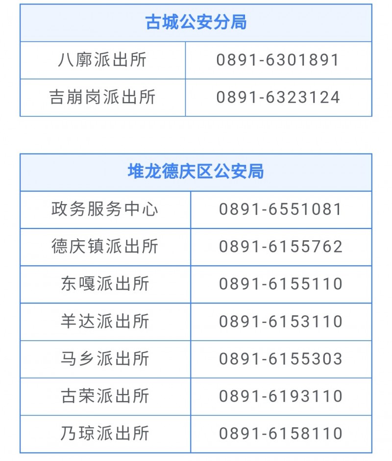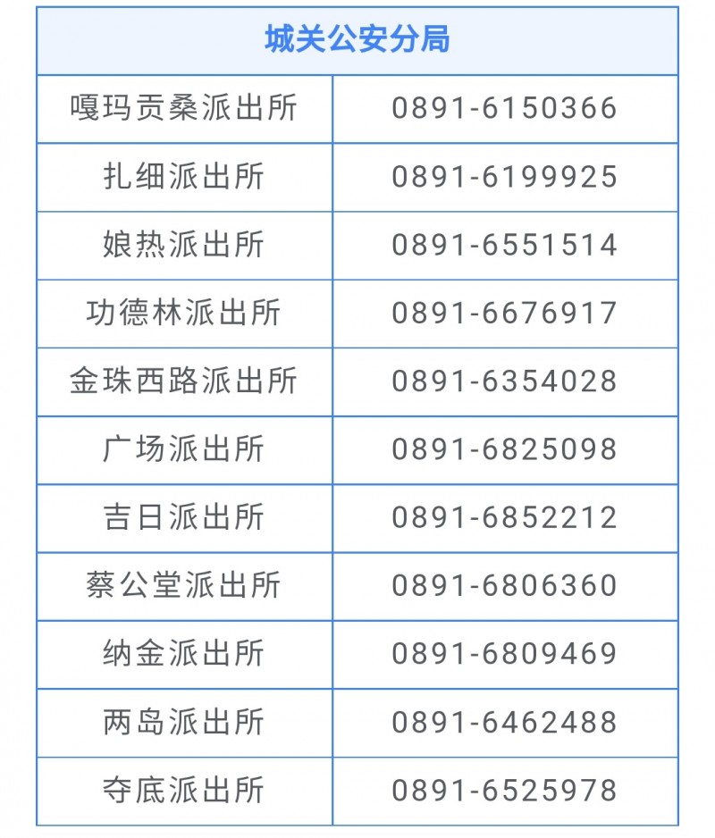 拉萨市古城分局和堆龙德庆区各户籍派出所联系电话大全表: