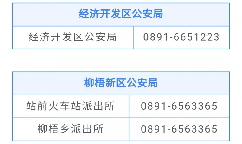 拉萨市经济开发区和柳梧新区各户籍派出所联系电话大全表: