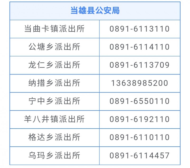 拉萨市区县辖区各户籍派出所联系电话大全表:为您整理了一套拉萨市辖区各户籍派出所电话大全表,极具收藏和使用价值,快快转给需要的小伙伴吧!