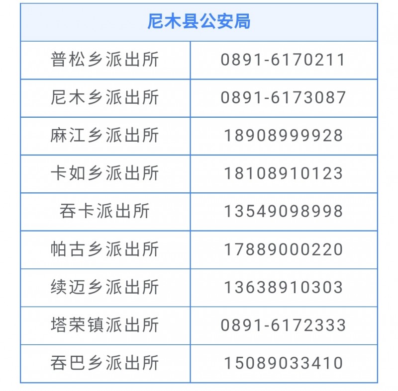 拉萨市尼木县各户籍派出所联系电话大全表: