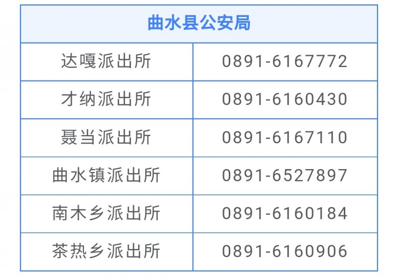 拉萨市曲水县辖区各户籍派出所联系电话大全表: