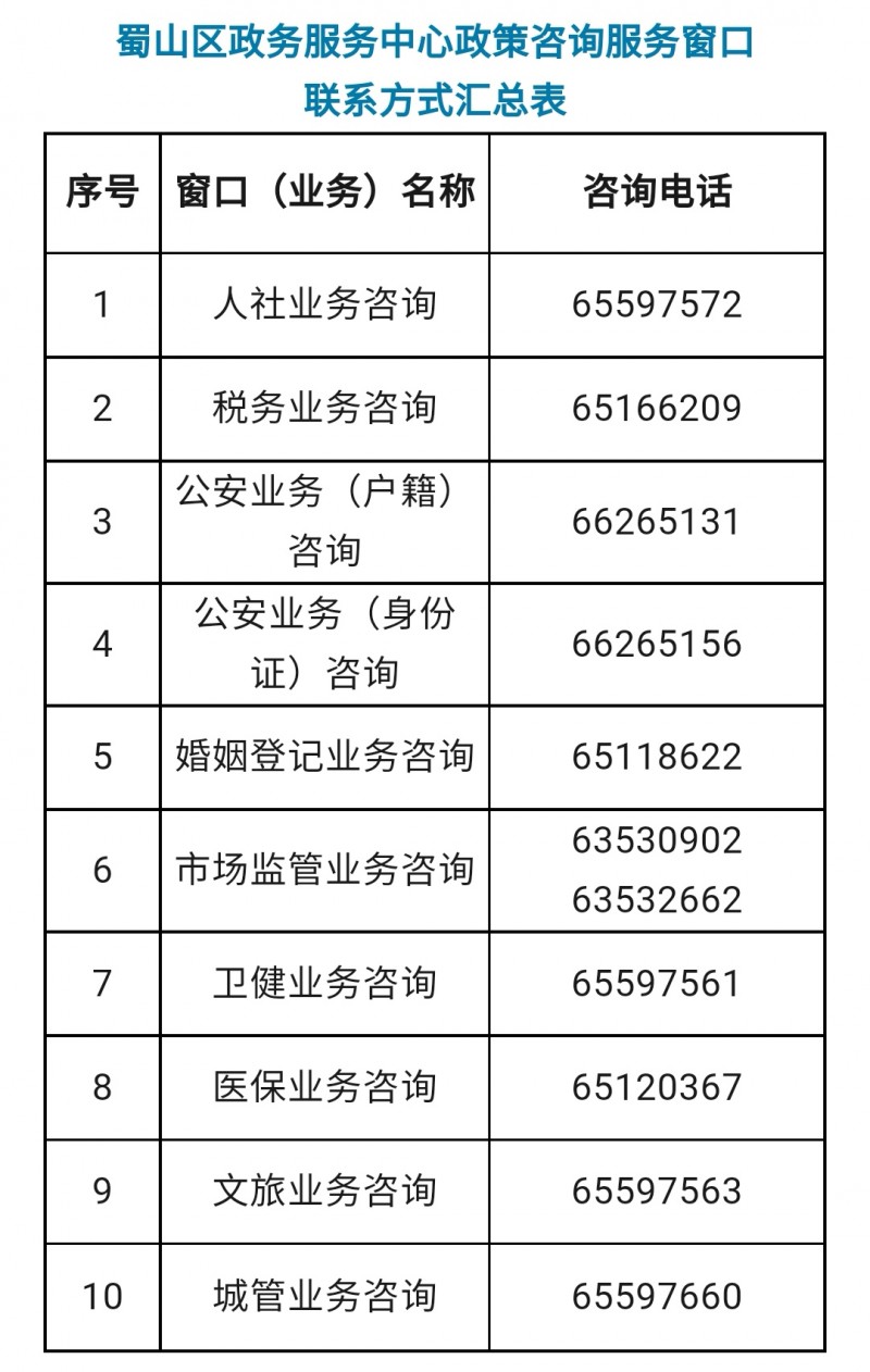 合肥市蜀山区政务服务中心政策咨询服务窗口联系方式汇总表:现在大家都知道办理各类行政事项业务都集中在政务服务中心,为了方便蜀山区辖区群众办理各类业务,特此把合肥市蜀山区政务服务中心政策咨询服务窗口联系方式汇总表向社会公布。