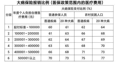 参保后参保人发生的医保政策范围内的医疗费用可按规定报销,享受当年度的普通门诊统筹待遇(每人每年报销370元,签约一家社区卫生服务站、村卫生室报销70%,社区中心、乡镇卫生院报销60%)、门诊慢特殊病种待遇(33种门诊慢特病,报销60%)、住院待遇、大病保险待遇(起付标准10000元,报销比例在60%以上),符合条件的还能享受医疗救助。