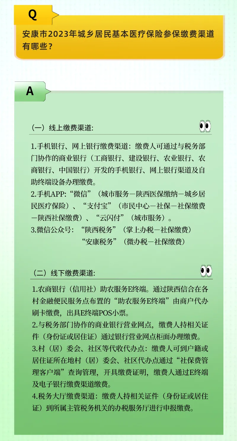 四,安康市城乡居民基本医疗保险费缴费渠道有哪些?