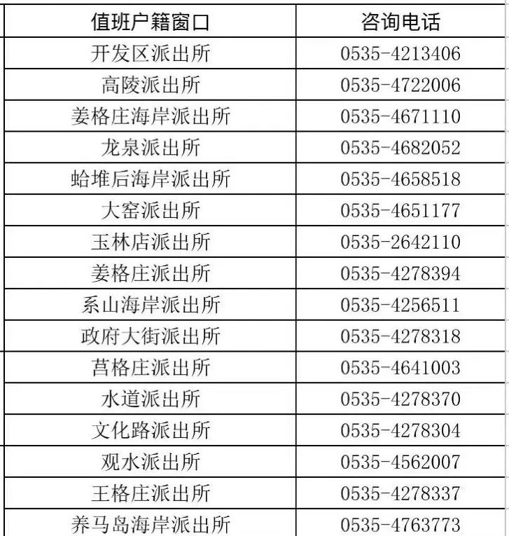 烟台市牟平区各派出所值班户籍窗口咨询电话大全表