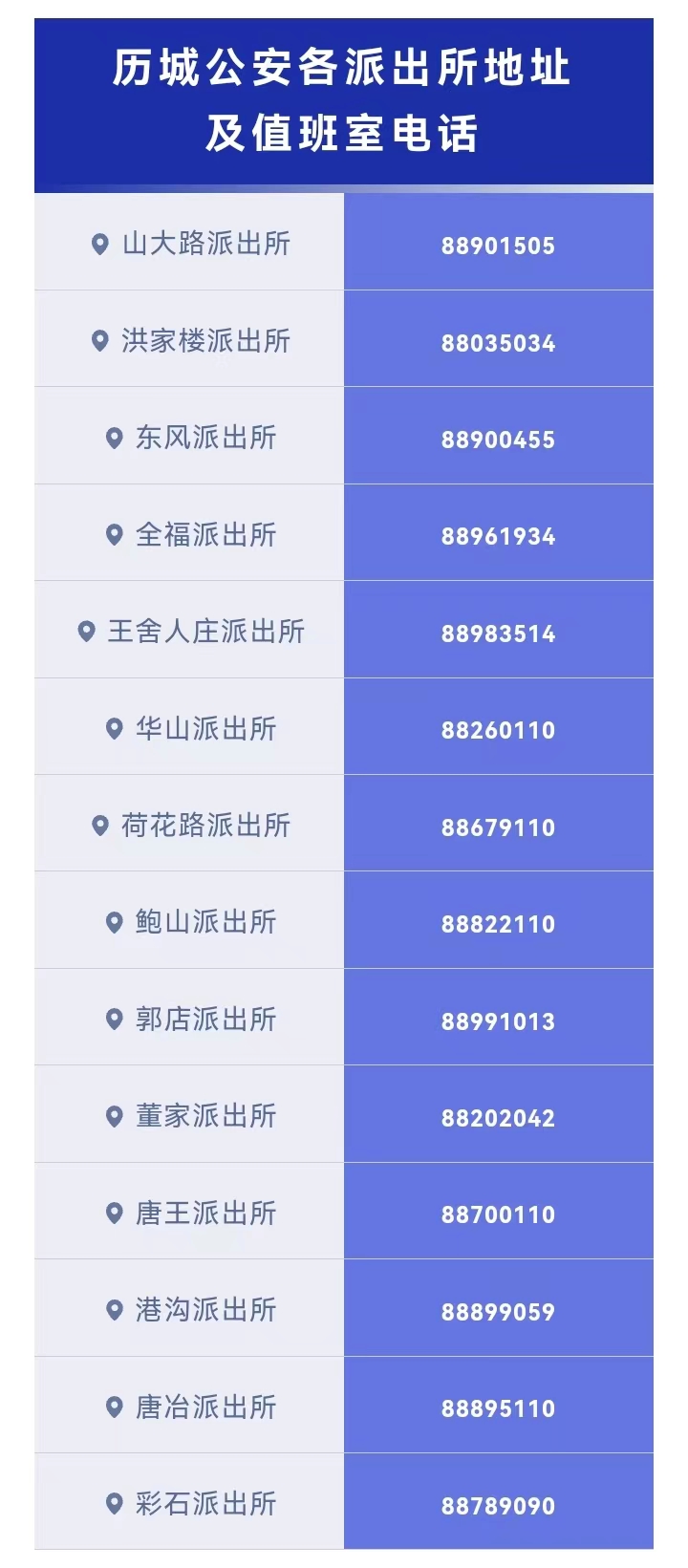 济南市历城区辖区各派出所地址及值班室电话一览表之便民信息作出免责说明,此信息仅供参考。