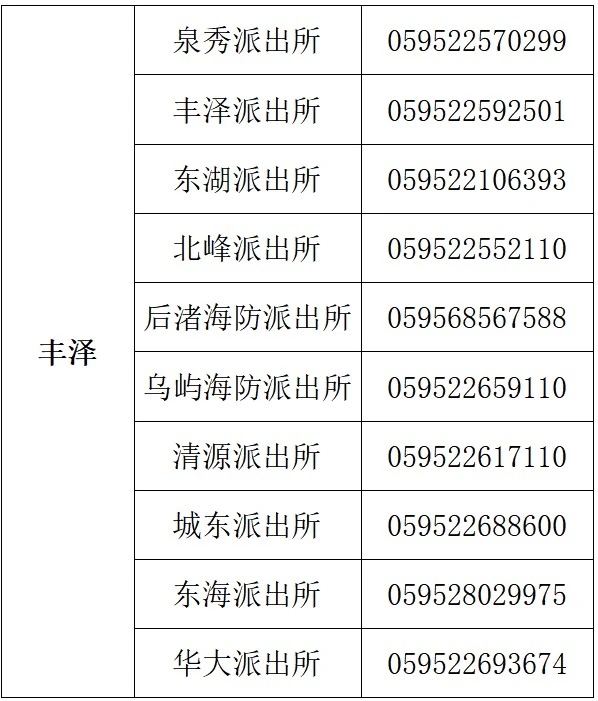 泉州市丰泽区各派出所户籍窗口预约电话汇总如下: