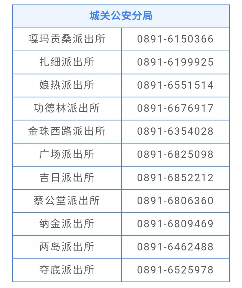 西藏拉萨市城关区辖区各派出所户籍窗口联系电话一览表: