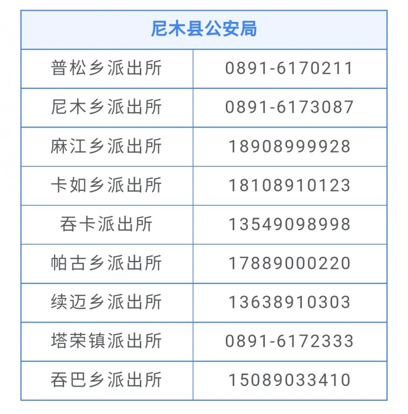 西藏拉萨市尼木县辖区各派出所户籍窗口联系电话一览表: