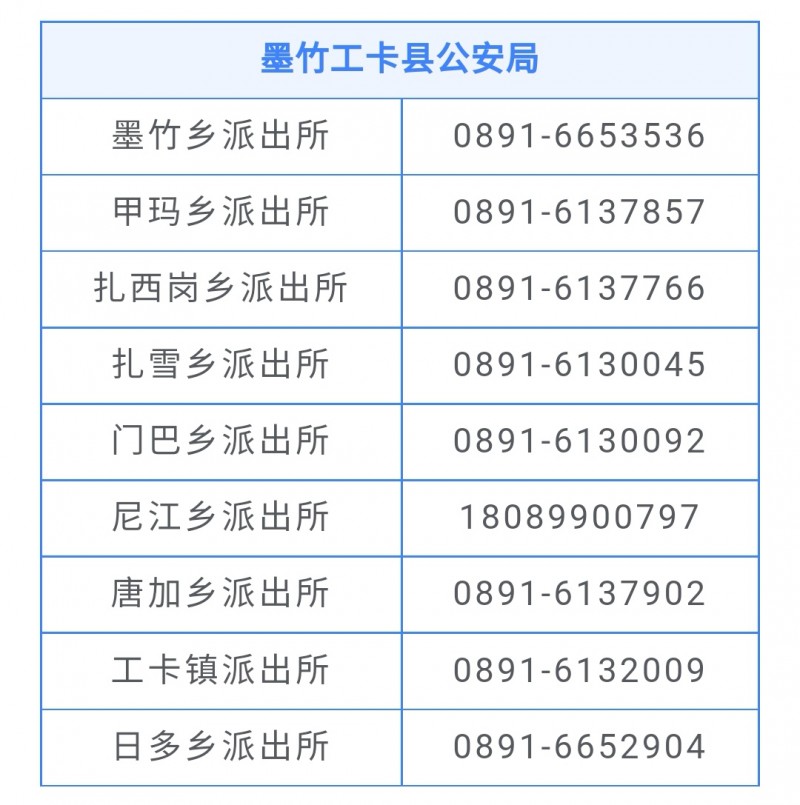 西藏拉萨市墨竹工卡县辖区各派出所户籍窗口联系电话一览表: