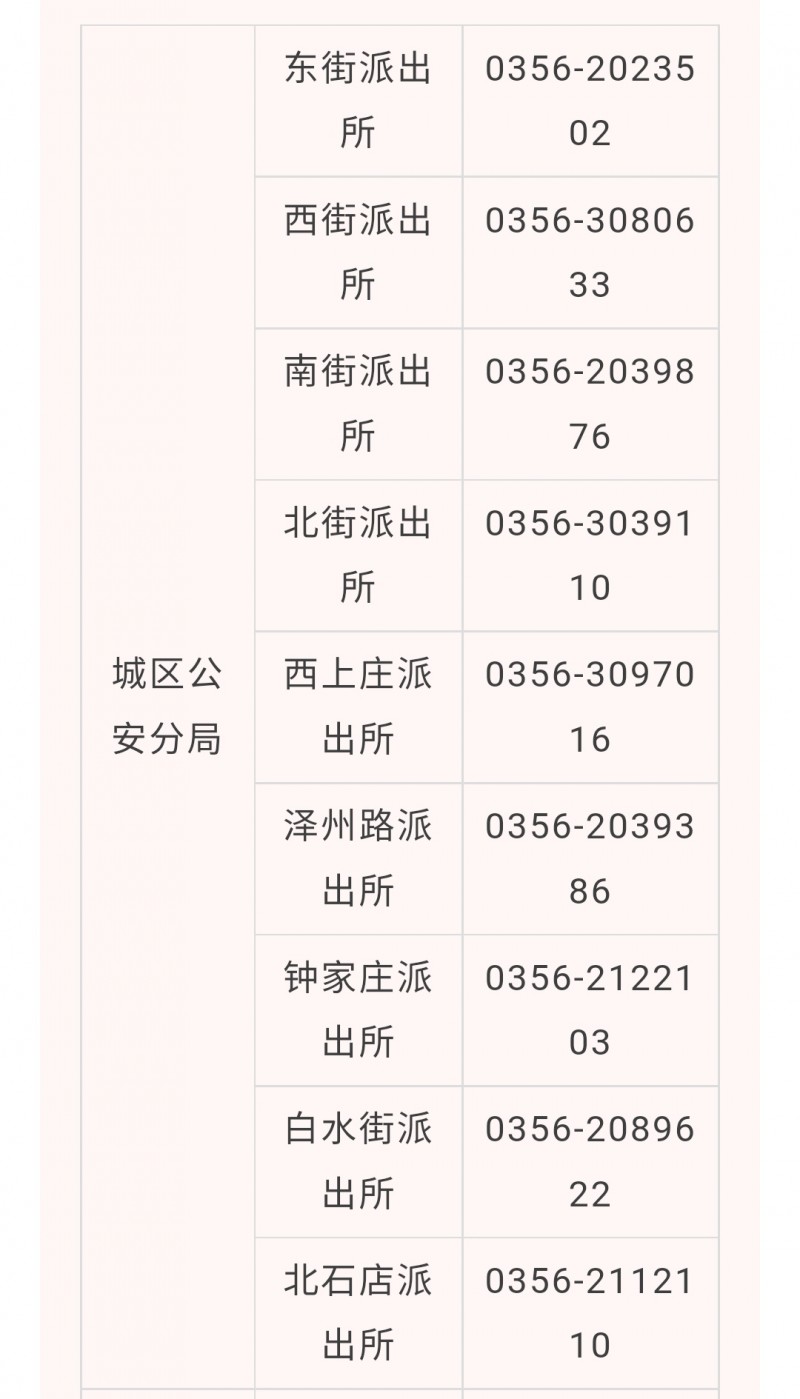 晋城市城区各派出所户籍窗口咨询预约电话汇总表如下: