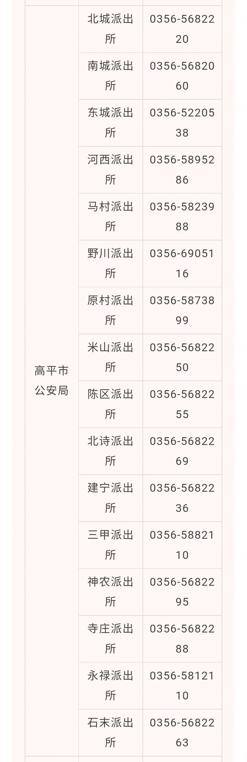 晋城高平市各派出所户籍窗口咨询预约电话汇总表: