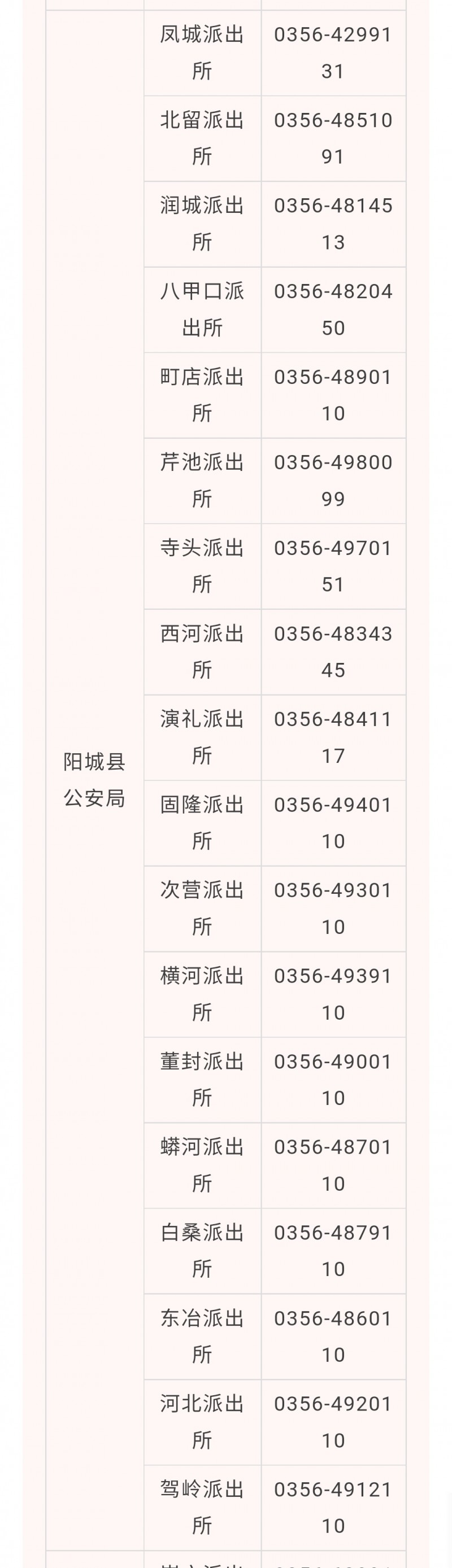晋城市阳城县各派出所户籍窗口咨询预约电话汇总表: