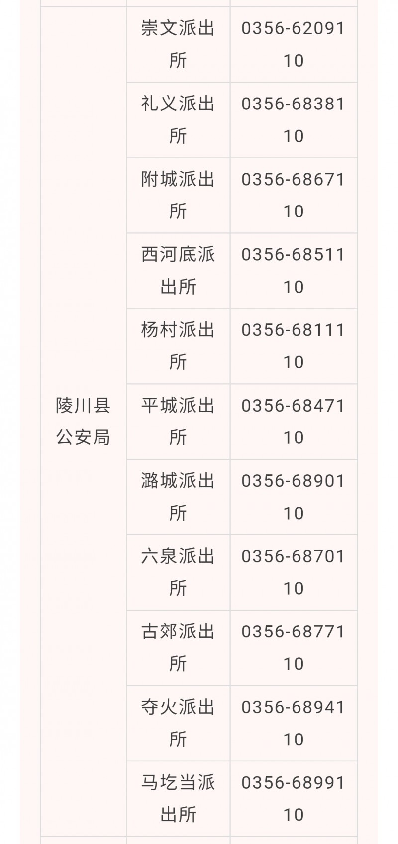 晋城市陵川县各派出所户籍窗口咨询预约电话汇总表: