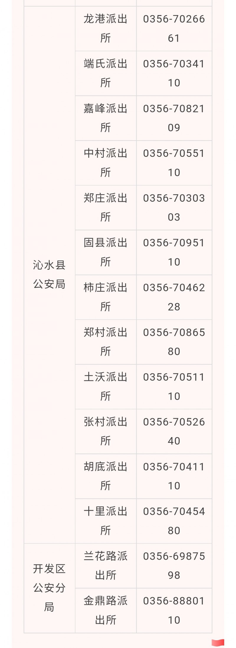 晋城市沁水县和开发区各派出所户籍窗口咨询预约电话汇总表: