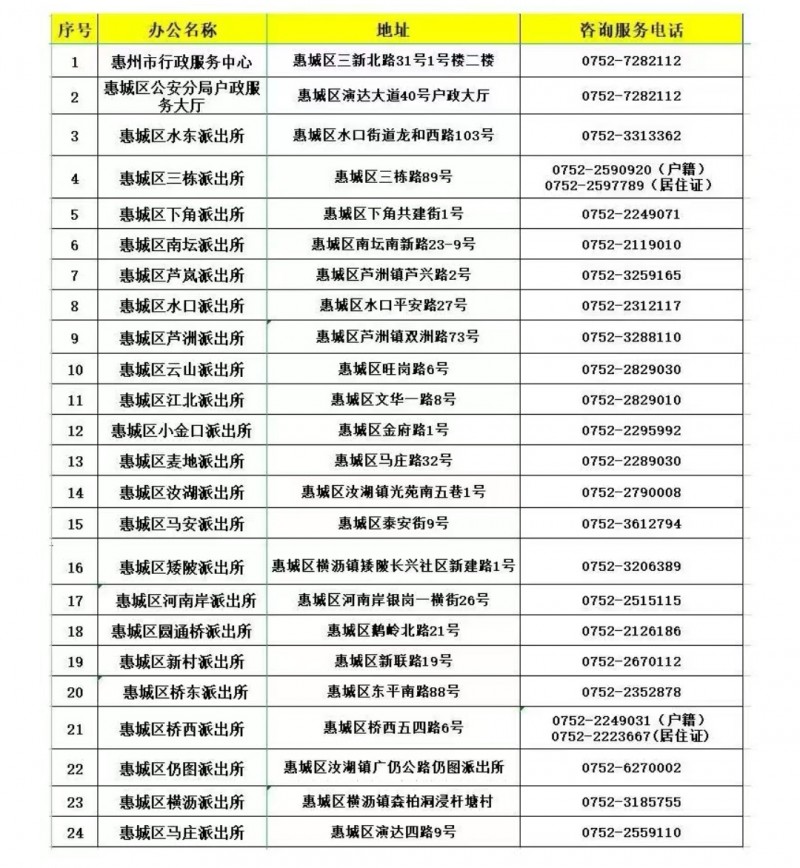 惠州市惠城区各派出所和户政大厅户政咨询服务热线电话大全表:为提供更便捷、高效、优质、满意的户政服务,方便广大群众咨询、办理户政业务,惠州市惠城区开通了24条户政咨询服务热线电话,如需了解户政相关政策,可拨打以下电话进行咨询哦。