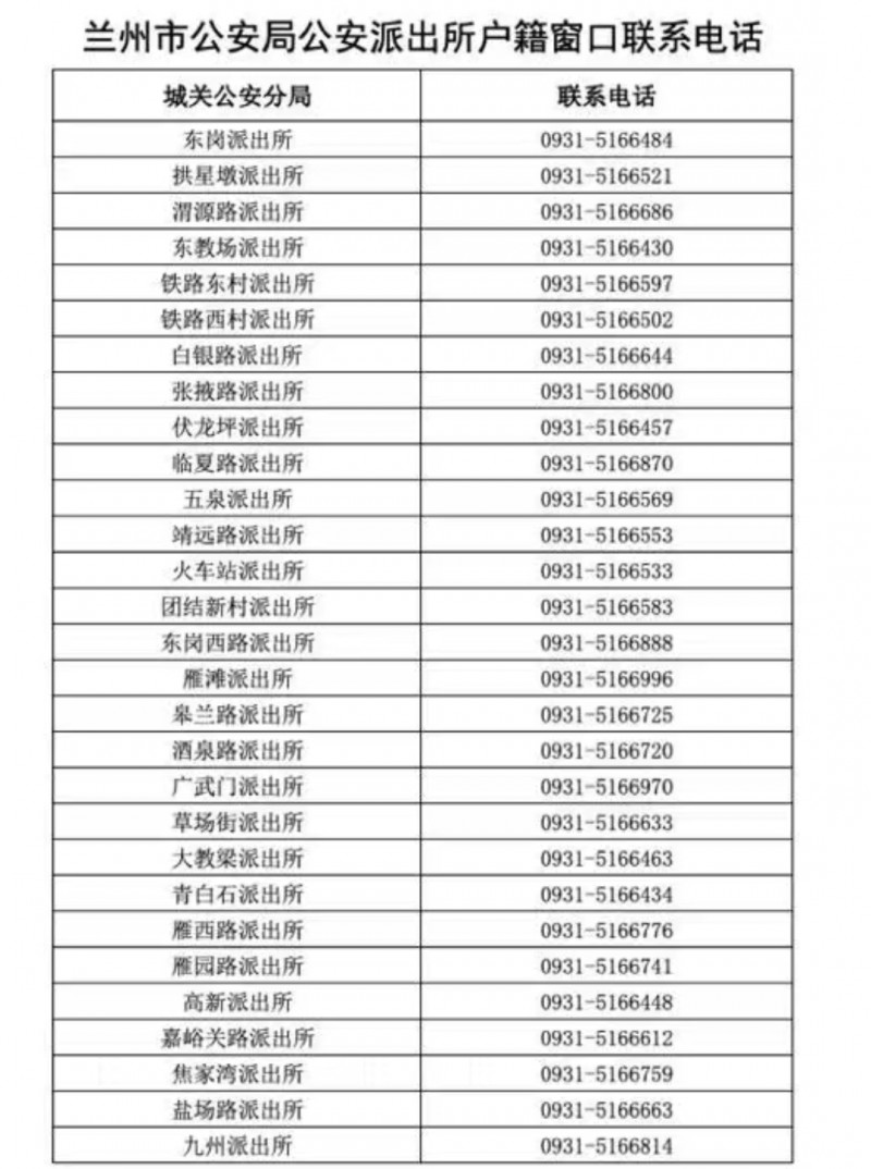 免责提示:关于兰州市各区(县)辖区派出所户籍窗口联系电话大全目录的便民信息作出免责提示,此信息仅供参考。