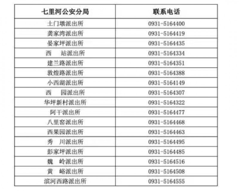 兰州市七里河区辖区派出所户籍窗口联系电话大全目录: