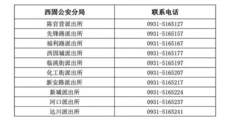 兰州市西固区辖区派出所户籍窗口联系电话大全目录: