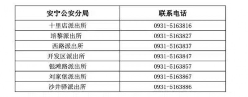 兰州市安宁区辖区派出所户籍窗口联系电话大全目录: