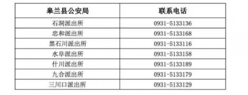 兰州市皋兰县辖区派出所户籍窗口联系电话大全目录: