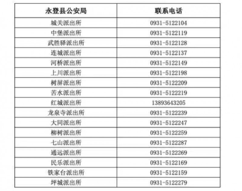 兰州市永登县辖区派出所户籍窗口联系电话大全目录: