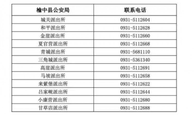 兰州市榆中县辖区派出所户籍窗口联系电话大全目录: