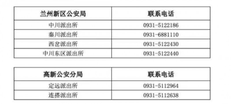 兰州市兰州新区、高新区各派出所户籍窗口联系电话大全目录:
