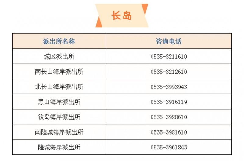 山东烟台市长岛分局各派出所户籍窗口服务电话大全表: