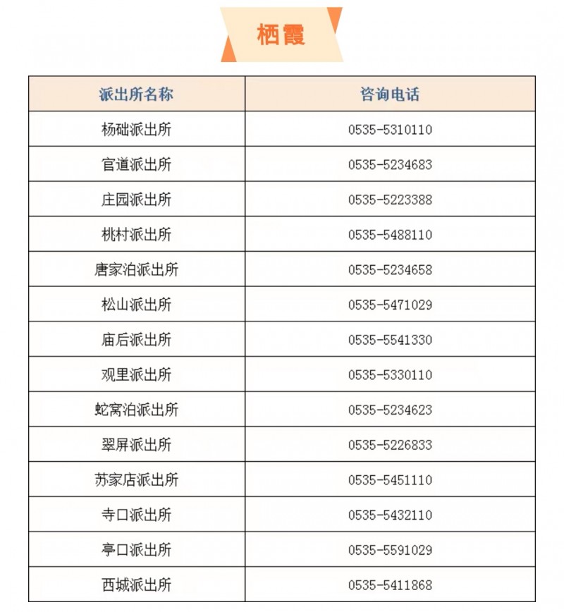 免责声明:关于山东烟台市各区(市)派出所户籍窗口服务电话大全表的便民服务信息作出免责声明,此信息仅供参考。