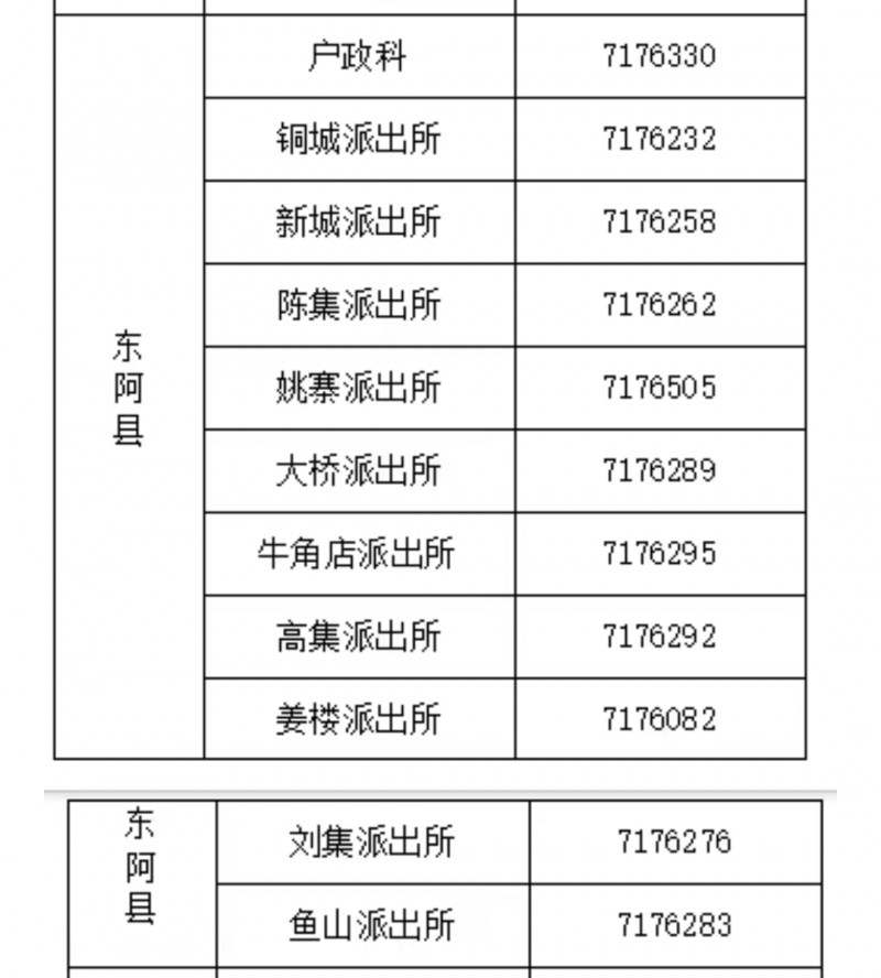 山东聊城市东阿县辖区内各派出所户籍窗口咨询服务电话汇总表: