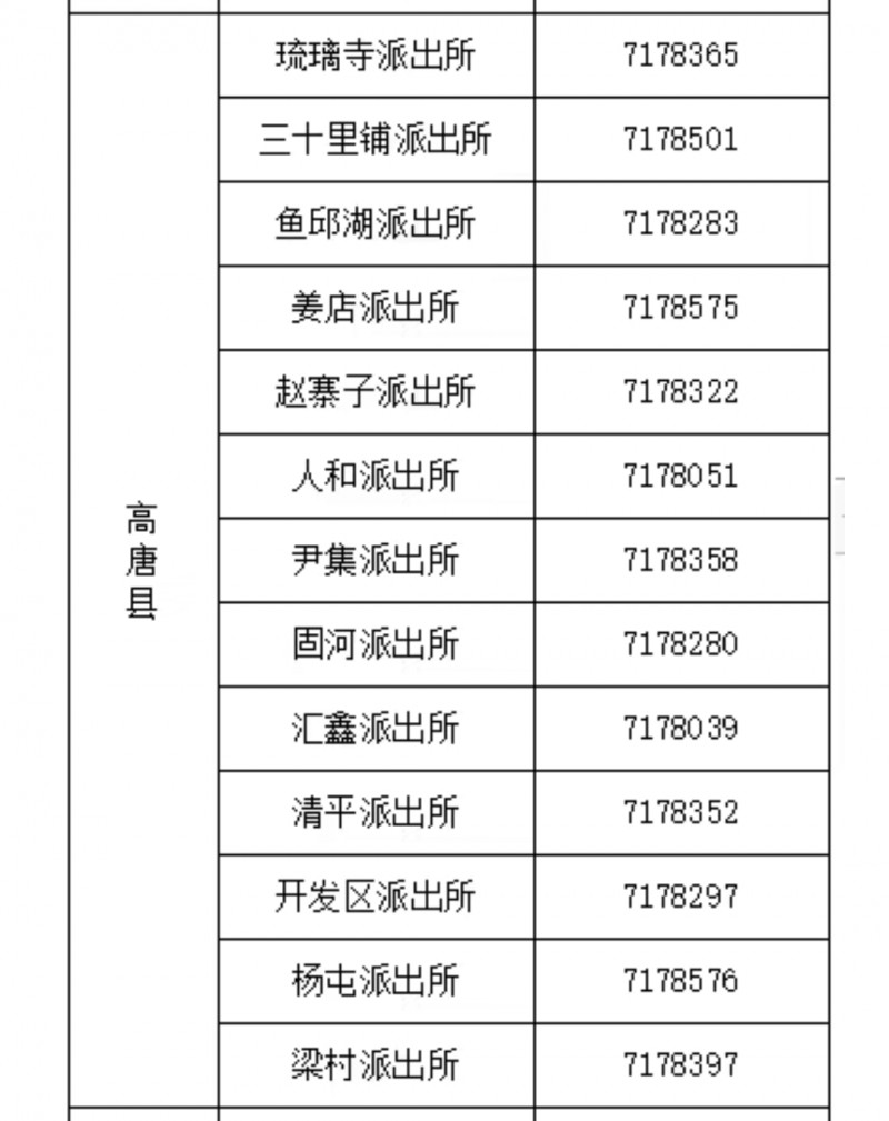 山东聊城市高唐县辖区内派出所户籍窗口咨询电话汇总表: