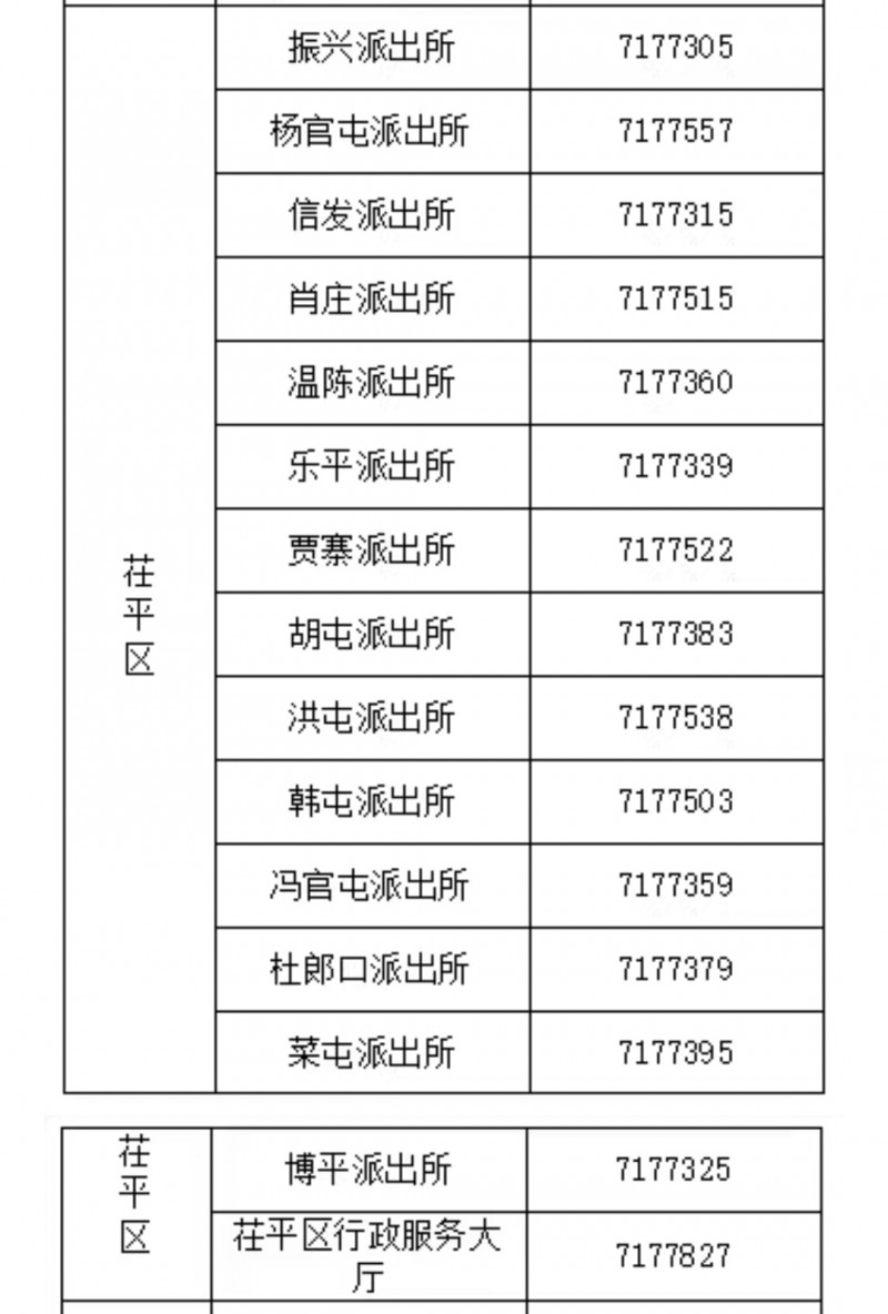 山东聊城市茬平区辖区各派出所户籍窗口咨询电话汇总表: