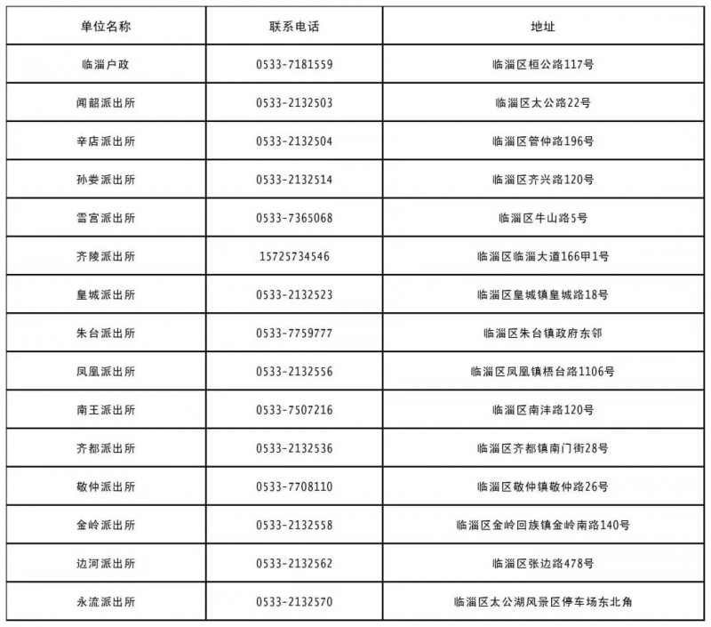 免责声明:关于淄博市临淄区各个派出所户政窗口联系电话及地址之便民信息作出免责声明,此信息仅供参考。