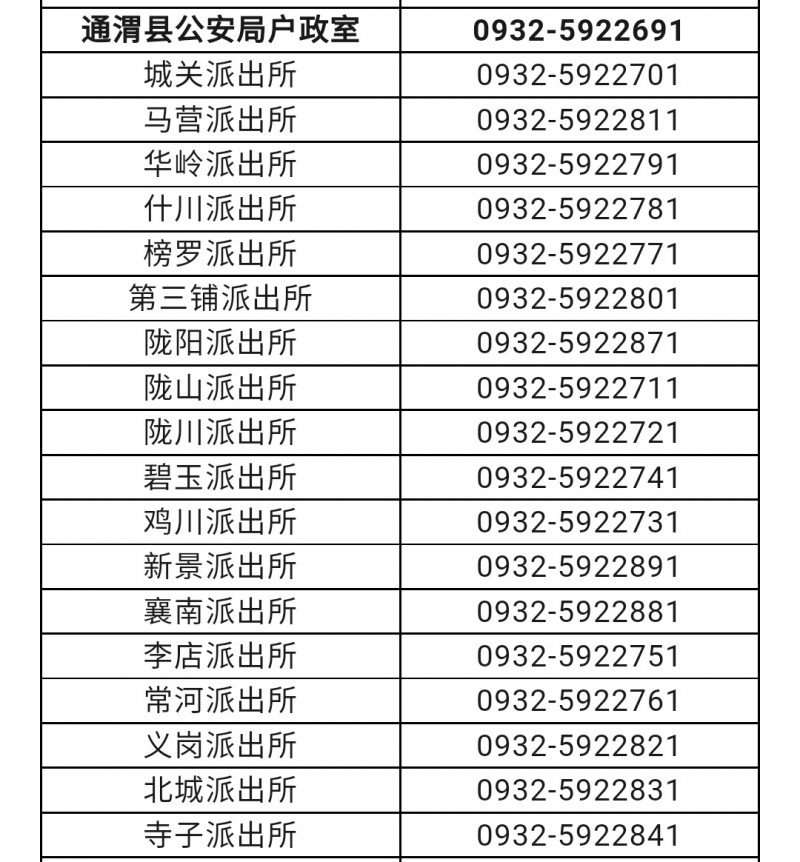 定西市通渭县户政室和各派出所户籍窗口联系电话目录表: