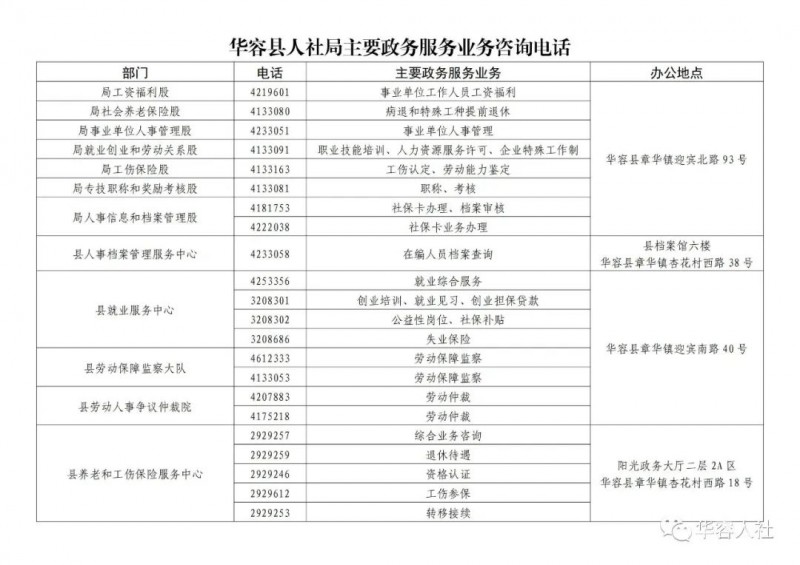华容县人力资源和社会保障局主要政务服务业务咨询电话汇总表:为进一步提高华容县人力资源和社会保障局的公共服务水平,更好服务办事群众,方便大家咨询了解相关政策信息、办理相关业务,现将华容县人力资源和社会保障局主要政务服务业务咨询电话汇总如下。