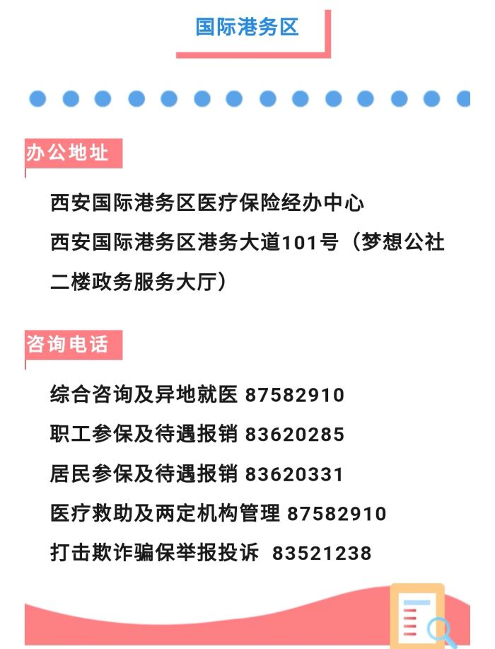 西安国际港务区医疗保险经办中心办公地址:西安国际港务区港务大道101号(梦想公社二楼政务服务大厅)